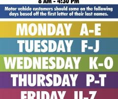 Motor Vehicle Customer Schedule June 8 - June 12 During the first week of reopening, customers are strongly encouraged to [...]