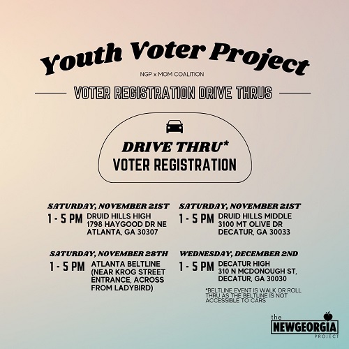 In conjunction with the New Georgia Project, the “Moms Coalition” and their teen daughters and sons, are campaigning to encourage high school students to register to vote in the upcoming January runoff. The goal is to get 200 new voters registered!